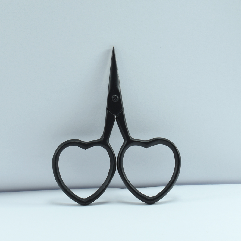 Add a sleek, professional touch to your sewing kit with our Small Heart Shaped Embroidery Scissors in black. These 2.5-inch scissors are perfect for detailed work such as embroidery, cross-stitch, and thread trimming.