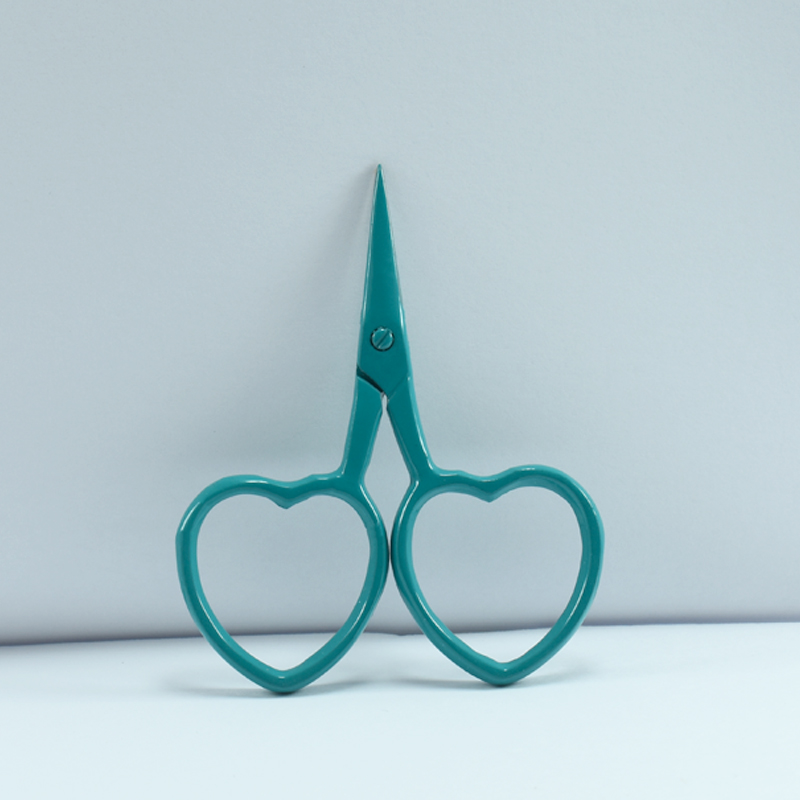 Elevate your sewing tools with our Small Heart Shaped Embroidery Scissors in teal green. Compact at 2.5 inches, these scissors are perfect for embroidery, cross-stitch, and detailed thread trimming.
