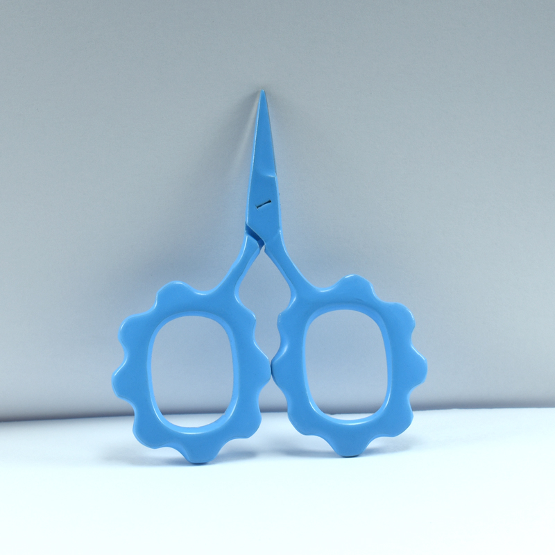 Bring elegance and functionality to your crafting with our Sunflower Shaped Embroidery Scissors in a soft light blue powder coating. Measuring 2.5 inches, these scissors are perfect for detailed work such as embroidery, cross-stitch, and thread trimming.