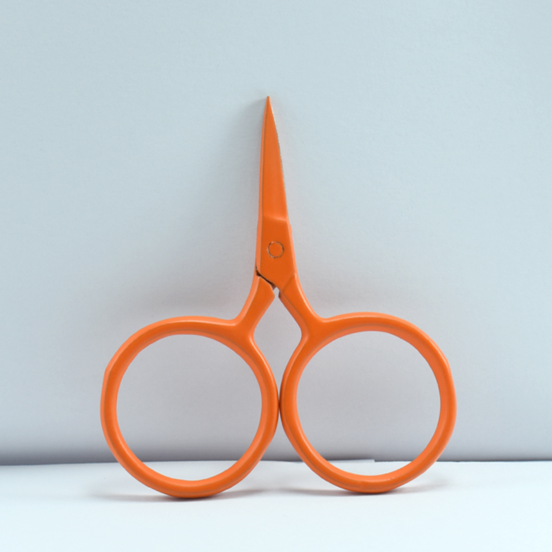 2.5″ Big Ring Tiny Scissors in full orange finish with large ring handles. Made from forged stainless steel for smooth, accurate thread cutting and embroidery work.