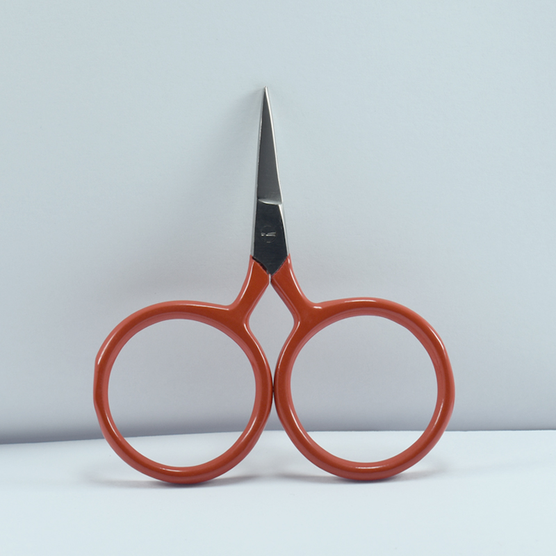 2.5″ Big Ring Tiny Scissors with a half red powder-coated handle. Forged stainless steel with large rings for a comfortable and precise grip.